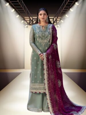 JD-607 Printed Kurti with Embroidery, Palazzo & Dupatta Set