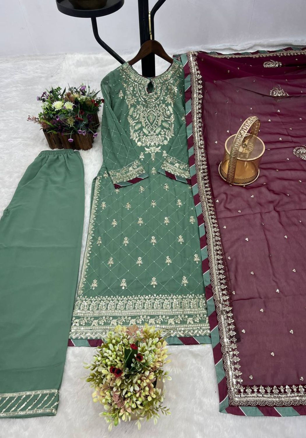Fabric Type | Kurti:- *FABRIC* :- HEAVY FAUX GEORGETTE. *WORK* :- ATTRACTIVE DIGITAL PRINT LACE BORDER WITH EMBROIDERY SEQUENCE WORK.(diamond stone hand work) *INNER* : HEAVY MICRO COTTON * LANGTH* : 46-47 INC, Palazzo :- *FABRIC* :- HEAVY FAUX GEORGETTE. *INNER* :- HEAVY MICRO COTTON. *WORK* :- BEAUTIFUL EMBROIDERY SEQUENCE LACE BORDER. *LENGTH* :- 40-42 inch, Dupatta:- *FABRIC* :- HEAVY FAUX GEORGETTE. *WORK* :-BEAUTIFUL EMBROIDERY SEQUENCE WORK. *LENGTH* :- 2.10 MTR |
