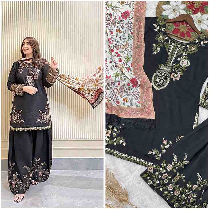 JD-614 Faux Georgette In Sharara Dupatta With Embroidery Work