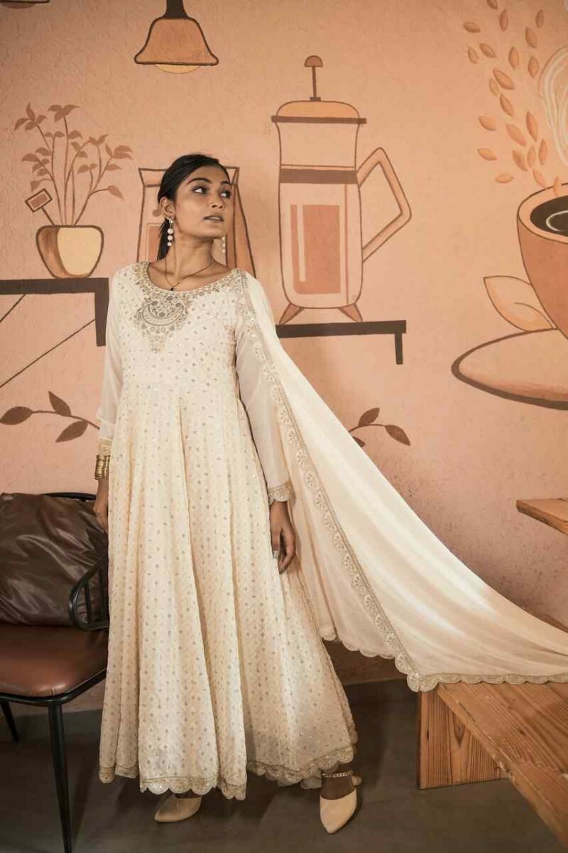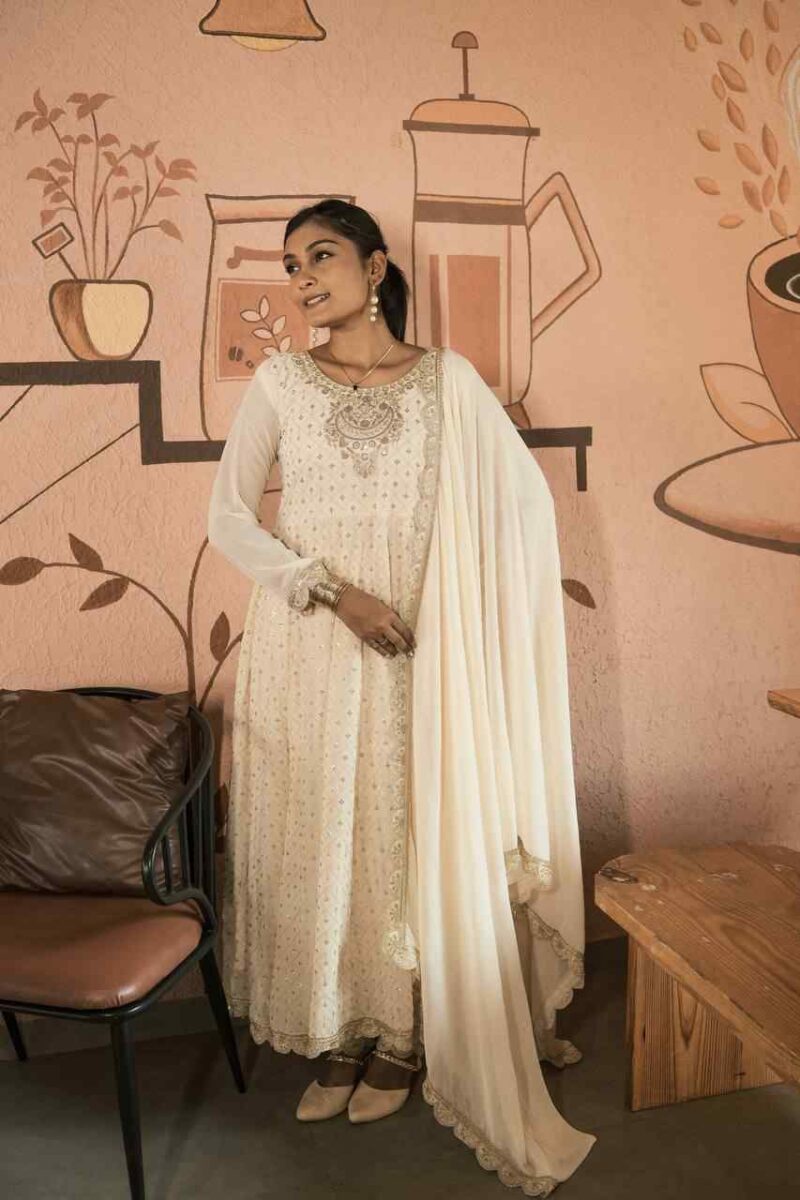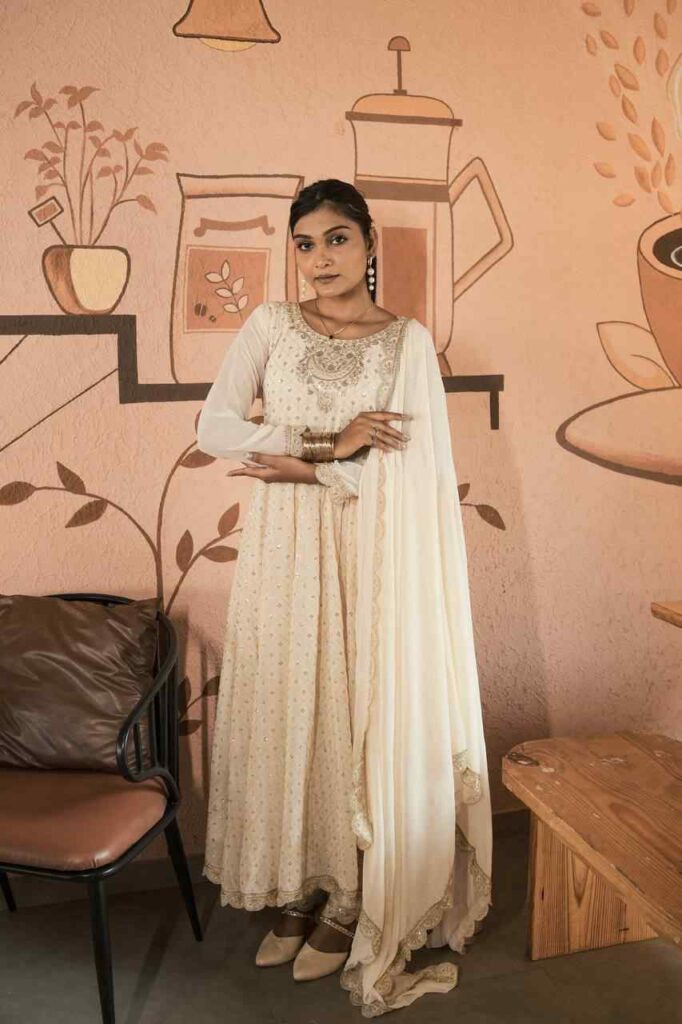 | Fabric Type | Gown : Heavy Faux Georgette , Work: Beautiful Embroidery Sequence And Coding Work. , Inner : Heavy Micro Cotton , Length : 52 Inch , Flair: 3Mtr Pant : Heavy Butter Silk , Work: Embroidery Sequence And Coding Work Lace Border, Length : 40 inch Dupatta : Heavy Faux Georgette , Work : Beautiful Embroidery Sequence And Coding Work Lace Border ,Length : 2.10Mtr. |