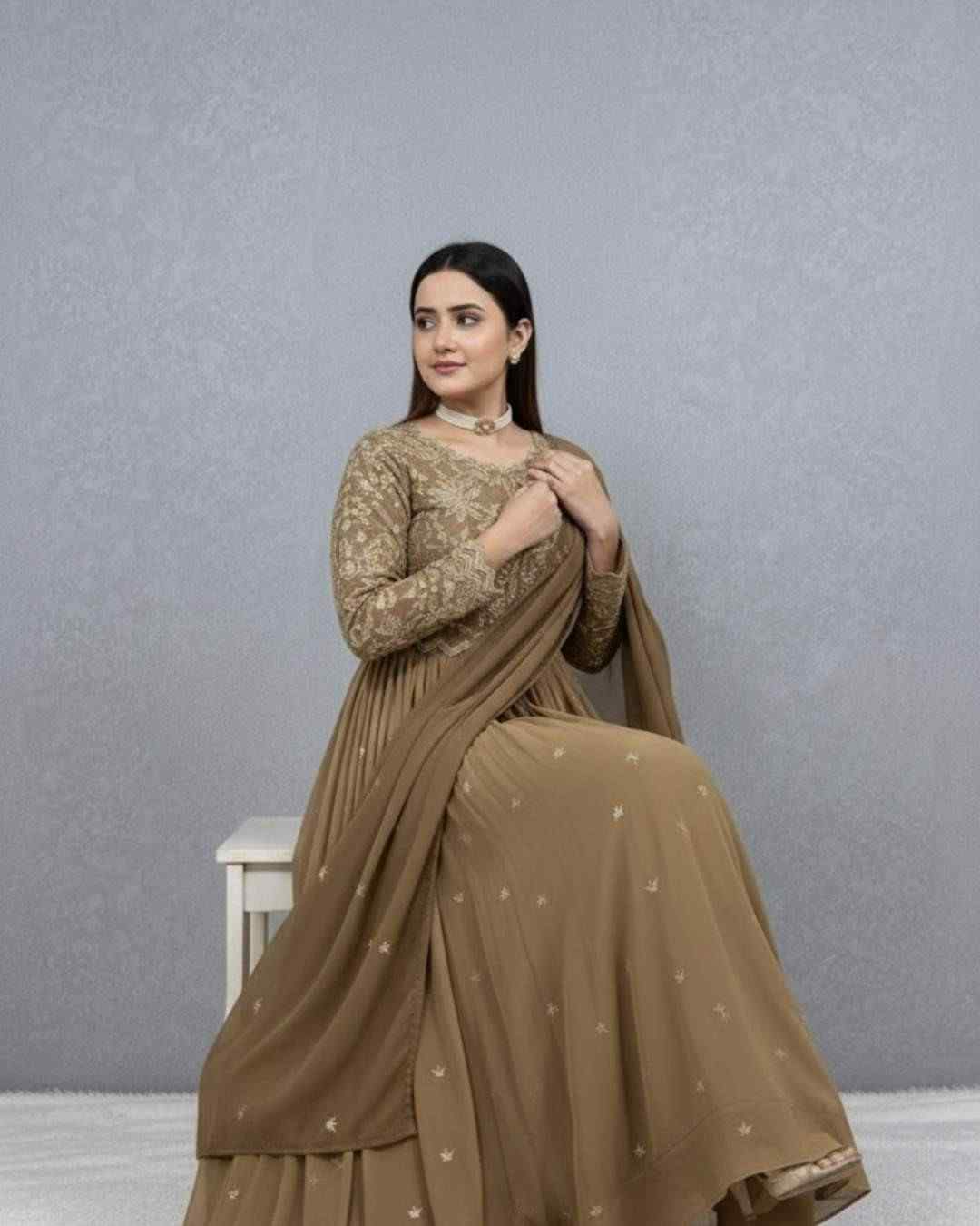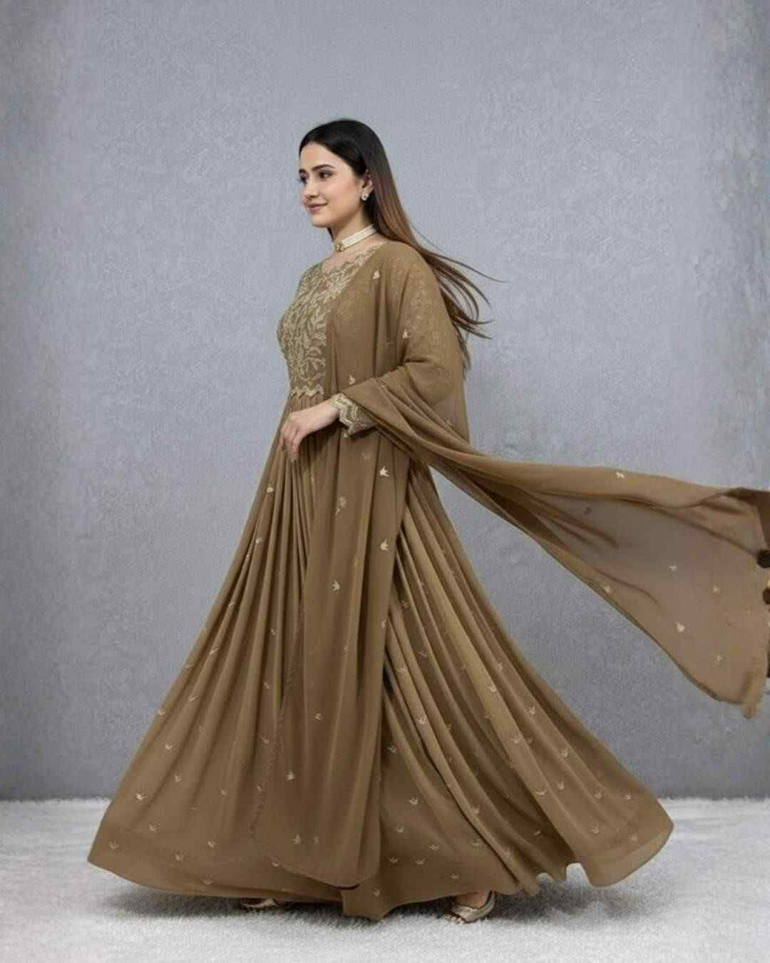 Fabric Type | Gown: Heavy Faux Georgette with Beautiful Embroidery Sequence Work , Inner:Heavy Micro Cotton ,Length:55-56 Inch, Flair :3 mtr Dupatta:Heavy Faux Georgette With Beautiful Embroidery Sequence Work ,Length: 2.10 mtr |