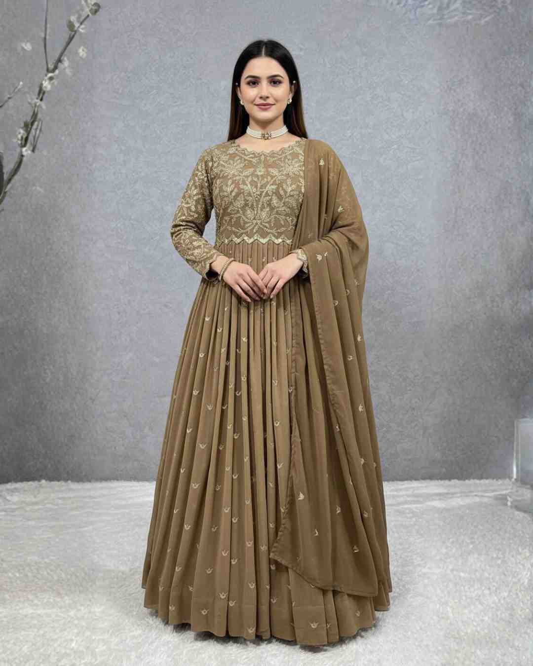 JL-1011 Georgette Gown And Dupatta Collection Full Catalog Available At Wholesale Rate.