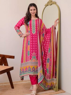 YD-027 Silk Cotton With Digital Print Work Bottom Dupatta