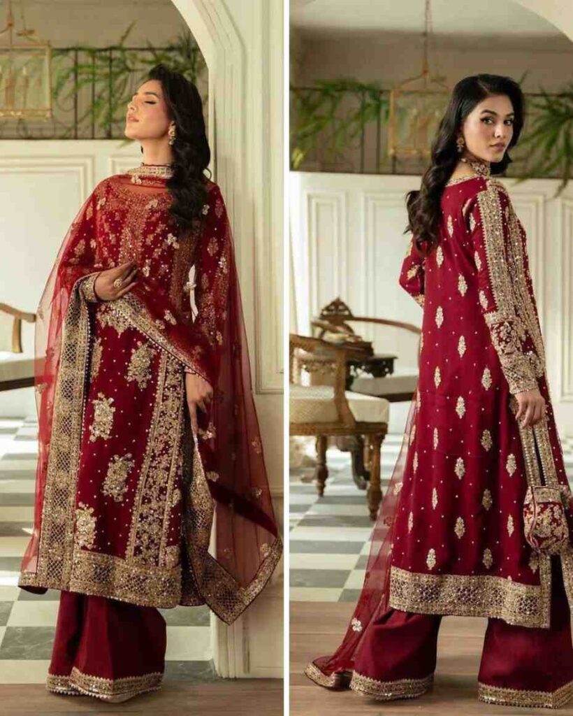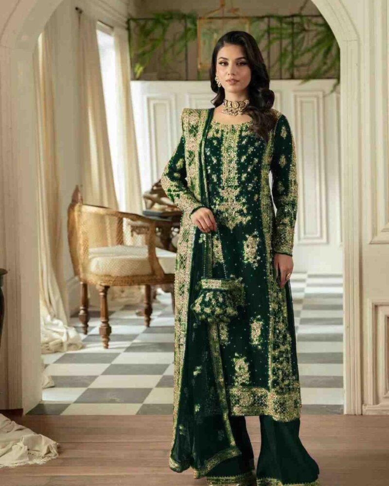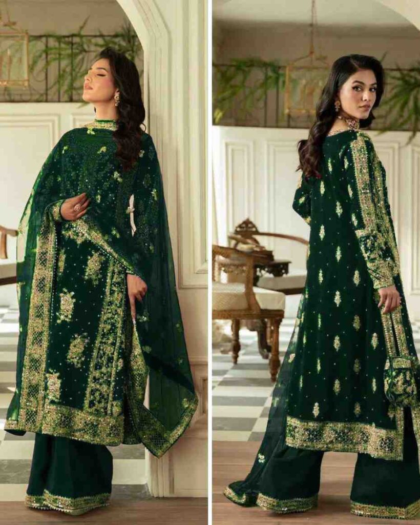 Fabric Type | Top : Faux Georgette with inner Work : Thread & Sequence With Pearl work ,Height :- 47 Inch Palazzo: Faux Georgette with inner Work : Sequence with Thread work ,Size. :- Free (Full stitched with elastic) Dupatta:- Fabric :-Soft Net Work :-Sequence with Thread work,Size :-2.2M |