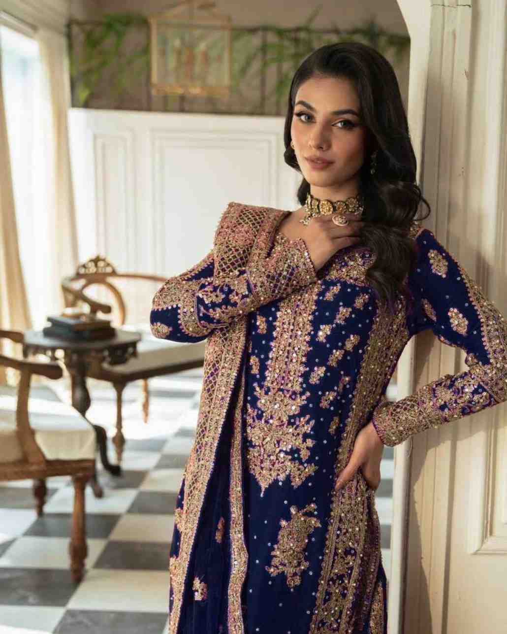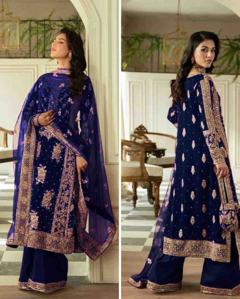 KD-1488 Velvet Suit with Sequence & Pearl Detailing