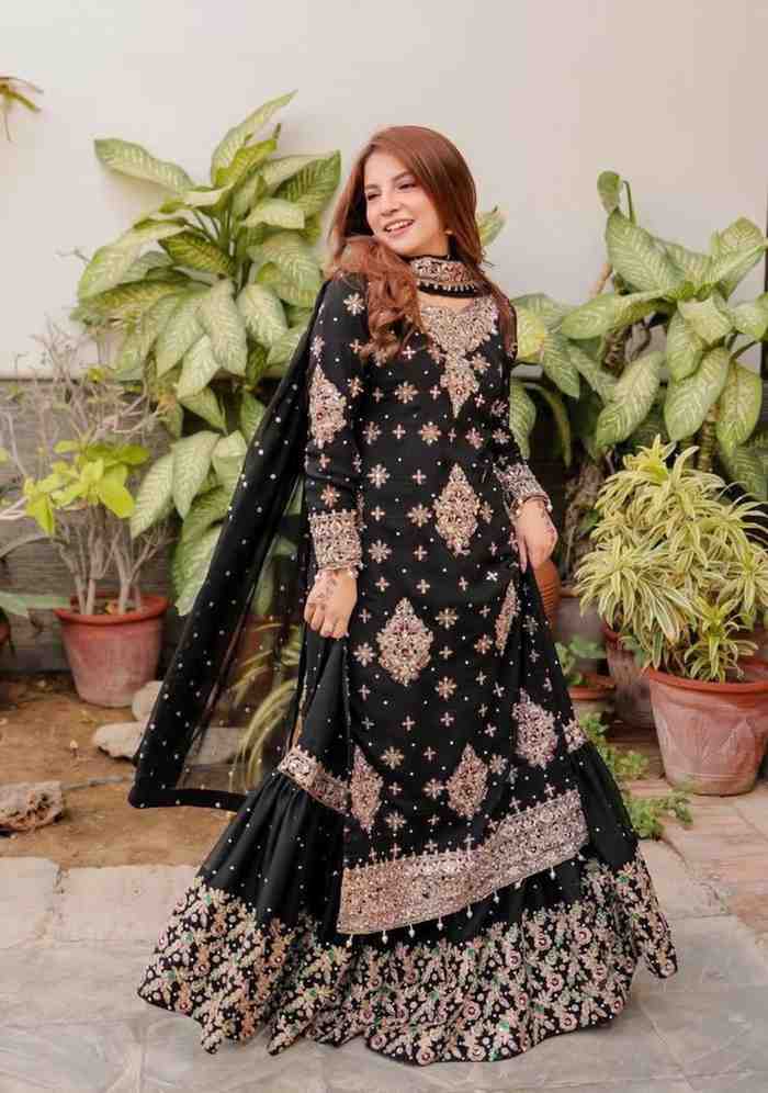 Fabric Type | Suit : Faux Georgette with inner , Work :Thread & Sequin with Fancy Lace Sharara :Faux Georgette with inner , Work : Thread & Sequin Dupatta:Faux Georgette , Work :Thread & Sequence work |