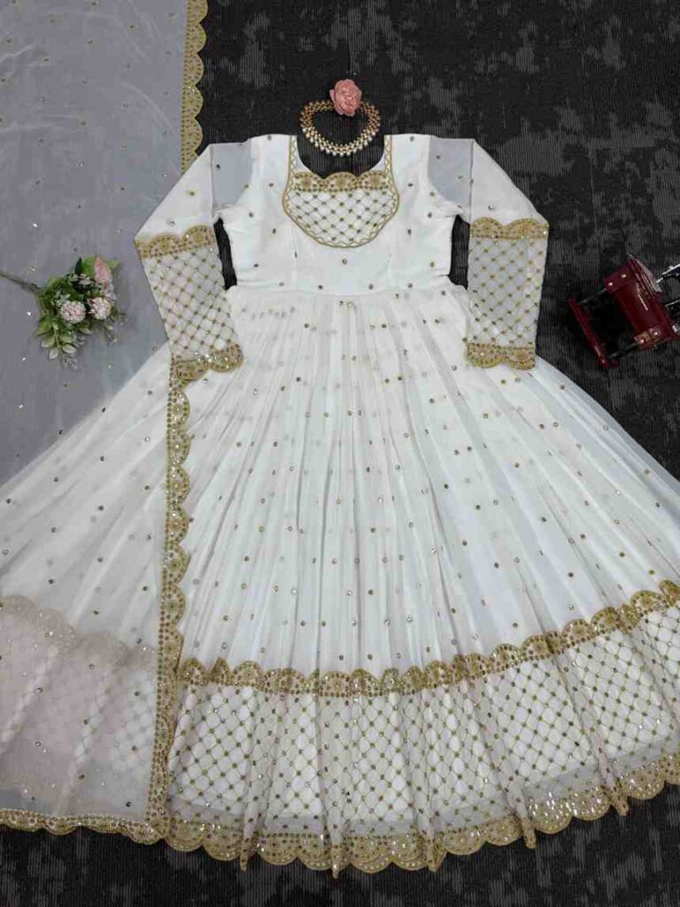 Fabric Type | Gown : Faux Georgette with inner , Work :Thread With 9MM sequence Dupatta: Faux Georgette , Work :Thread With 9MM sequence |