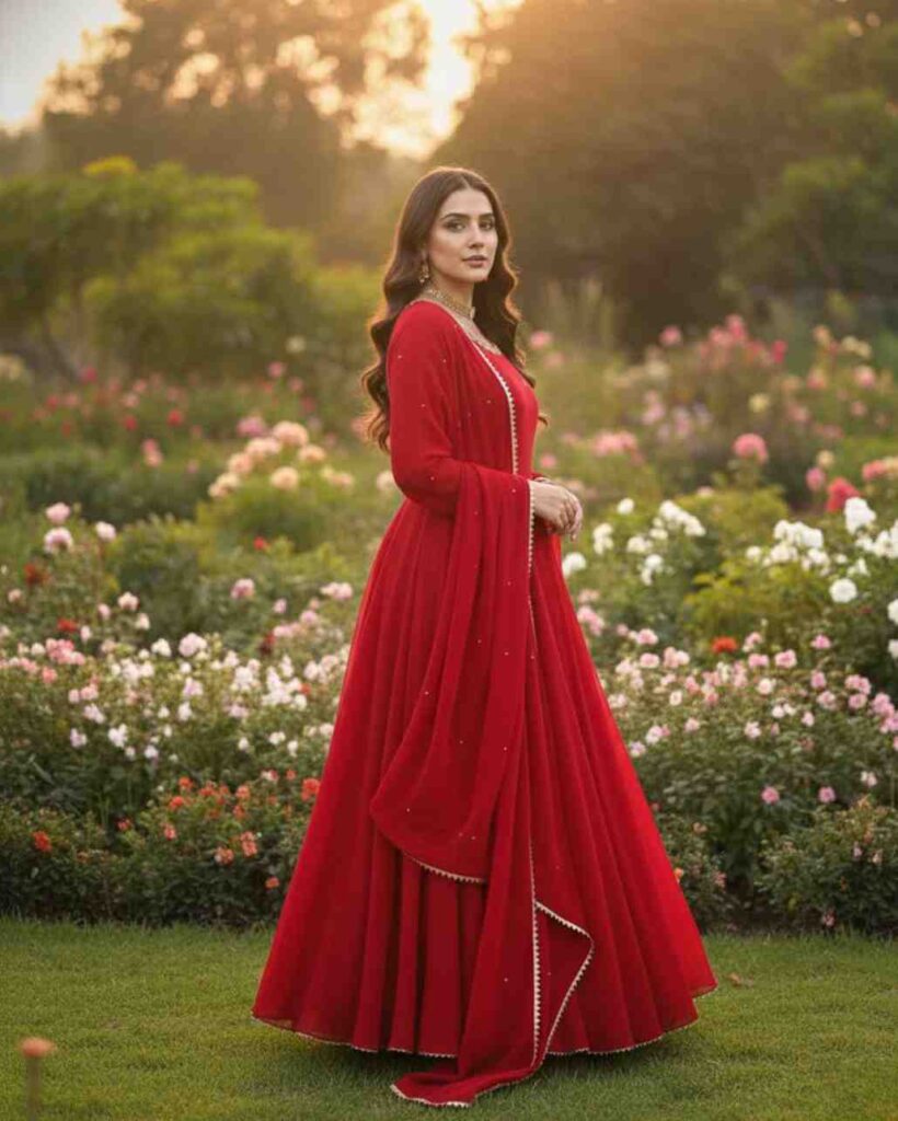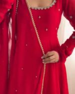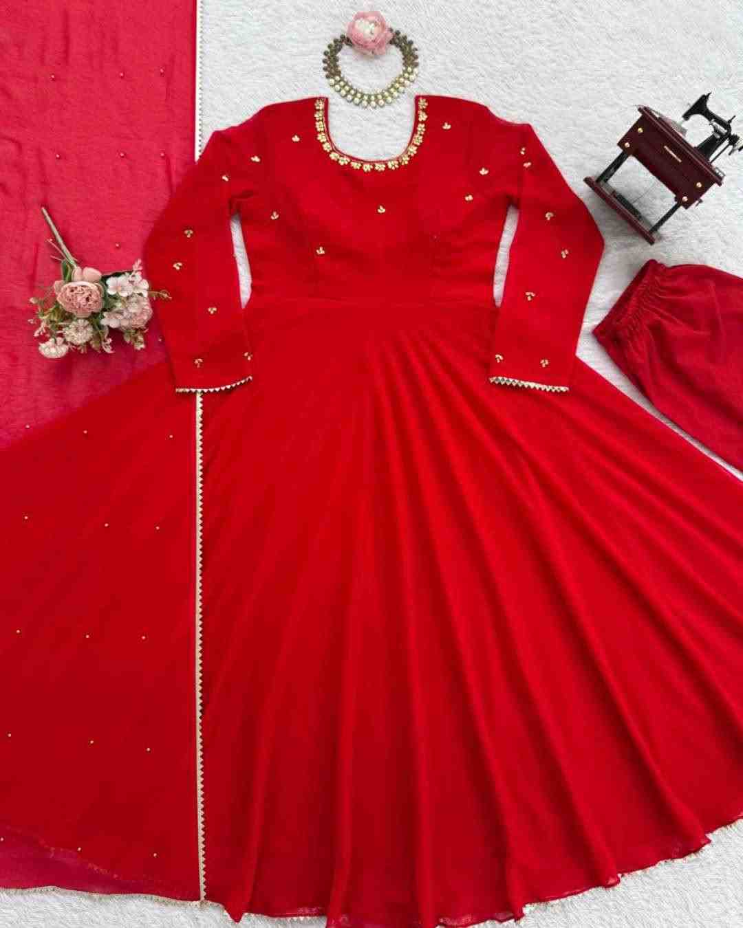 Fabric Type | Top : Faux Georgette with Comfortable inner & Hand work With LCD Stone work & Fancy Lace , Length : 53 Inch, Flair : 4Mtr. Pant :Micro Cotton With Fully stitched ,Length :39 Dupatta : Faux Georgette With Fancy Lace And Moti Work , Length: 2.10 Mtr |