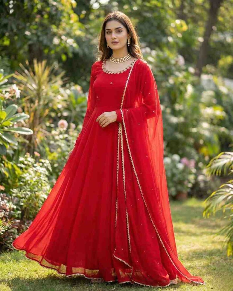 KD-1527 Faux Georgette Gown And Dupatta Collection Full Catalog Available At Wholesale Rate.