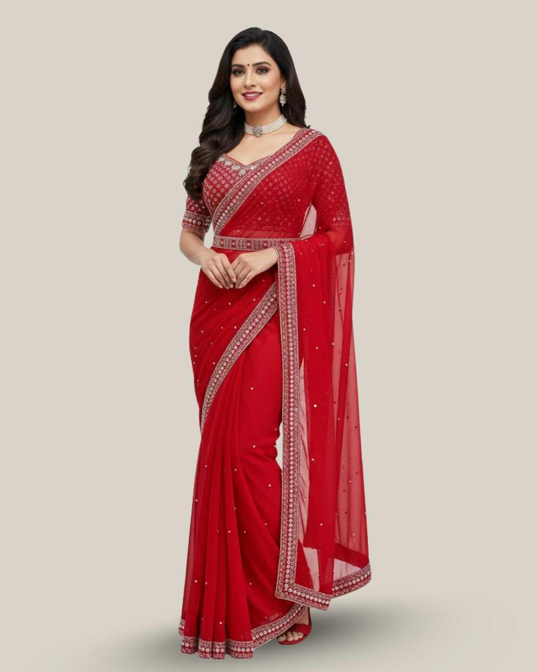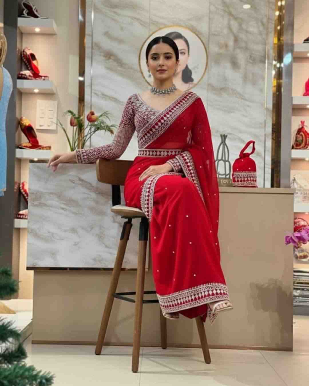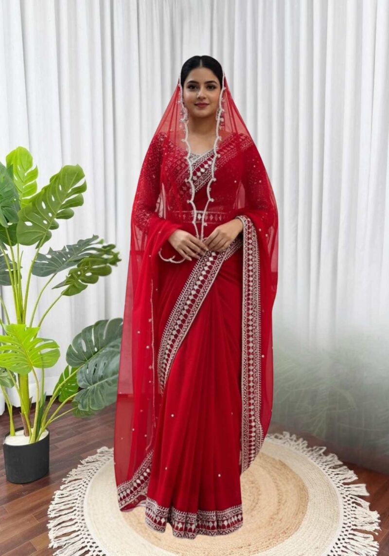 KD-605 Fedi Silk Saree Embroidery With Un-Stitched Blouse