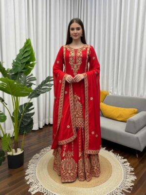 KD-1528 Chinon Silk Sharara and Dupatta With Fancy Lace