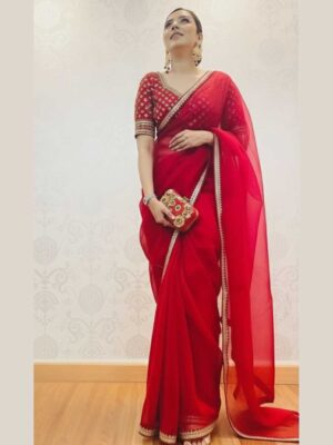 KD-558 Organza Silk Saree With Mono Banglori Un-Stitched Blouse