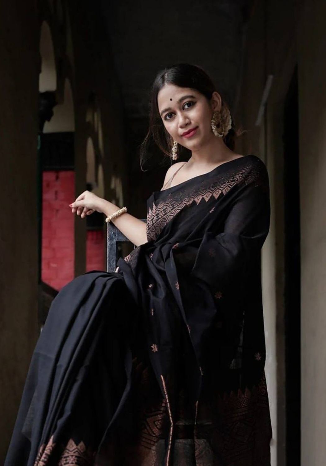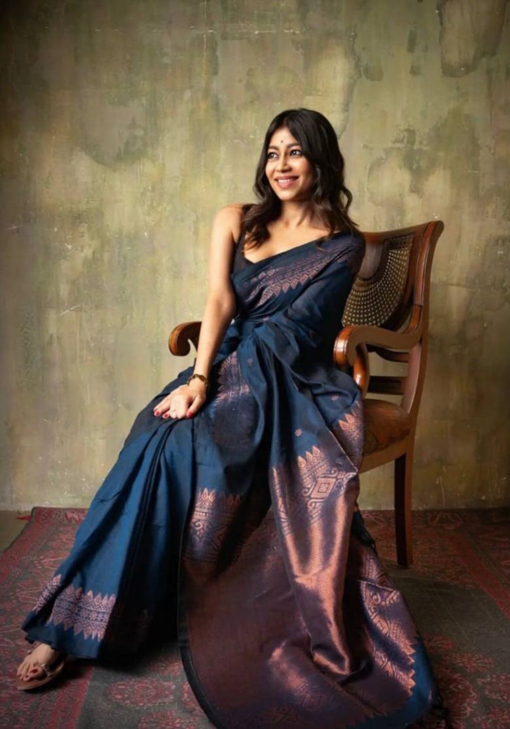 KP-6014 Soft Lichi Silk Saree with Jacquard Blouse ( Un- Stitched)