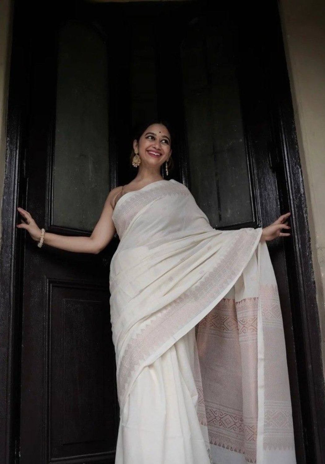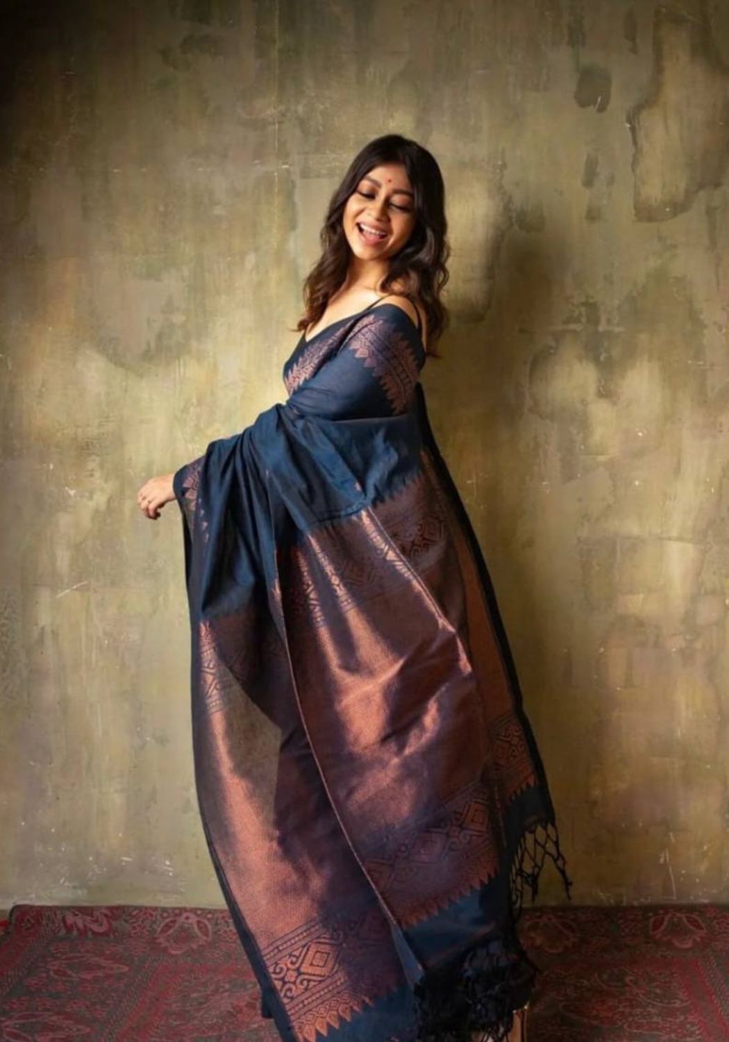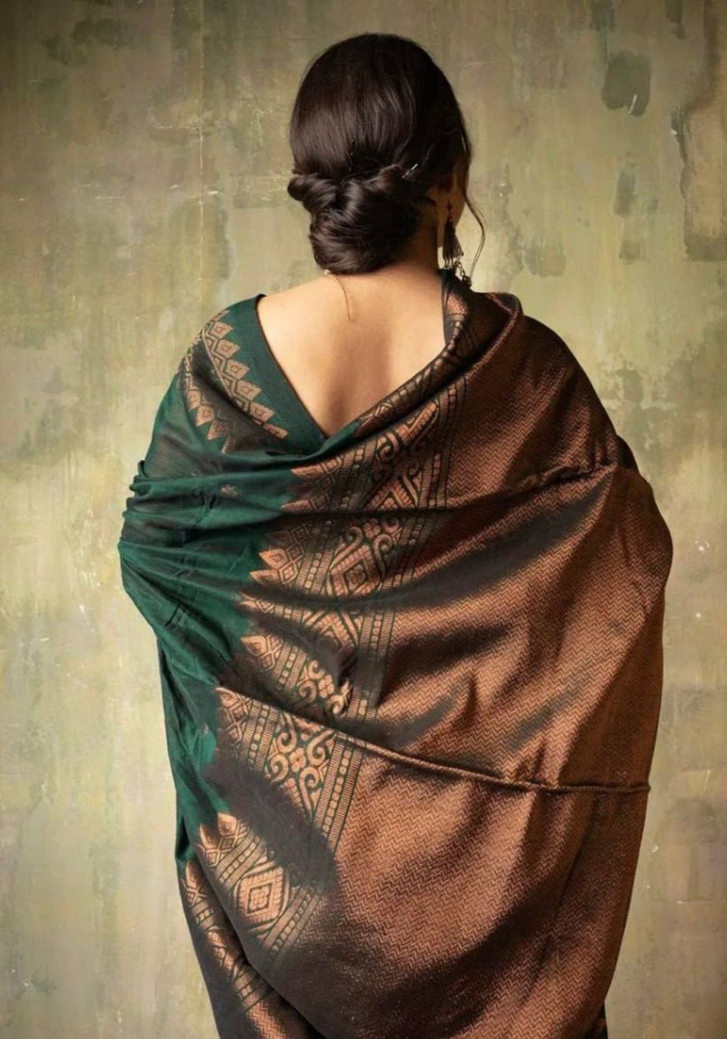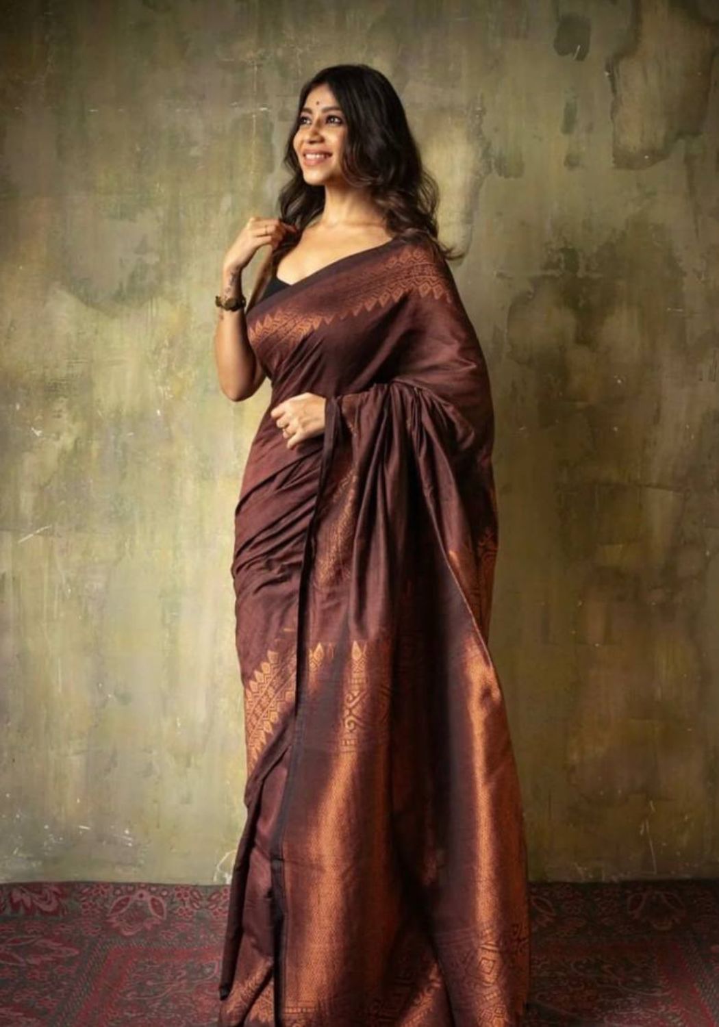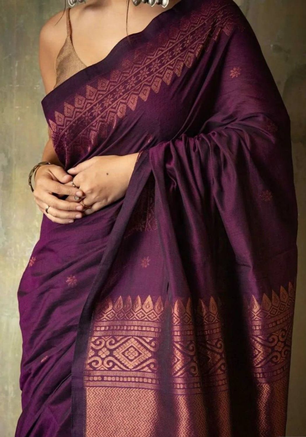 KP-5077 Soft Lichi Silk Saree with Jacquard Blouse ( Un- Stitched)