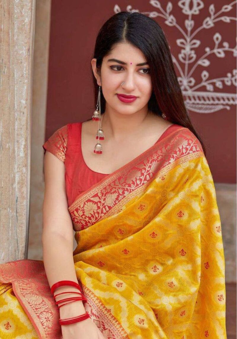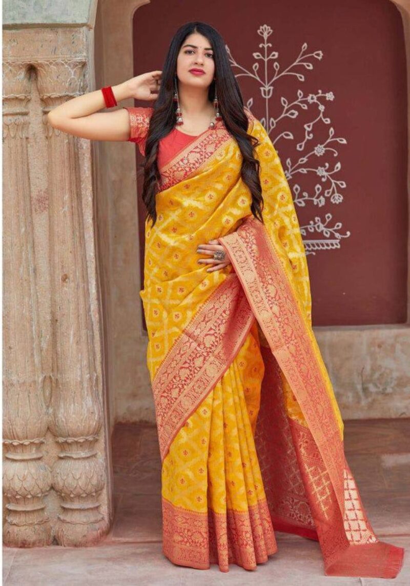 KP-6042 Soft Lichi Silk Saree with Jacquard Blouse ( Un- Stitched)