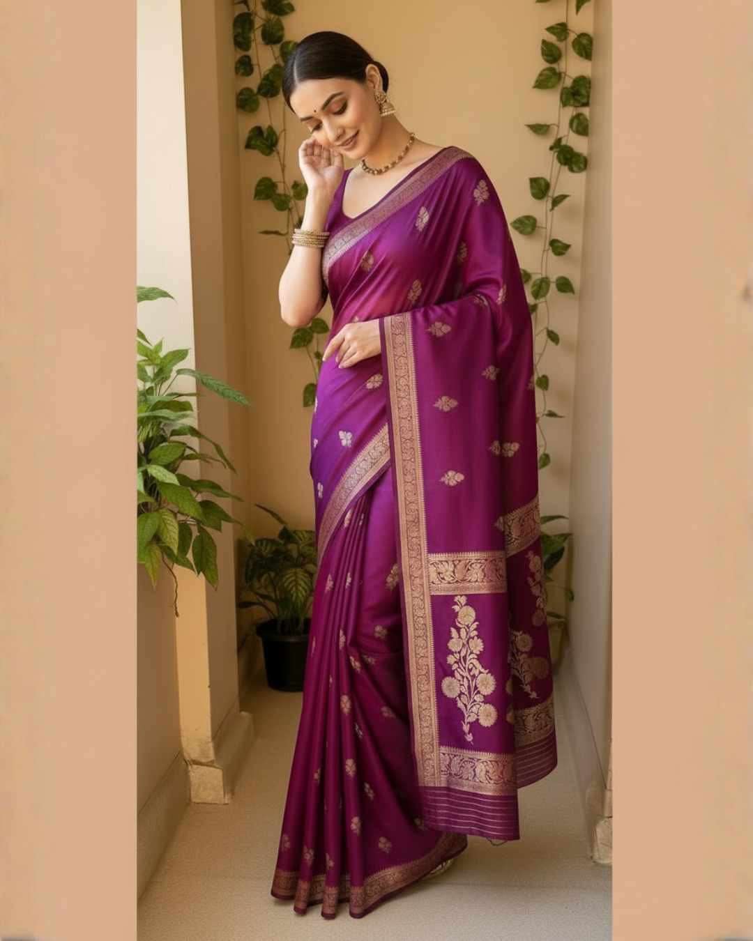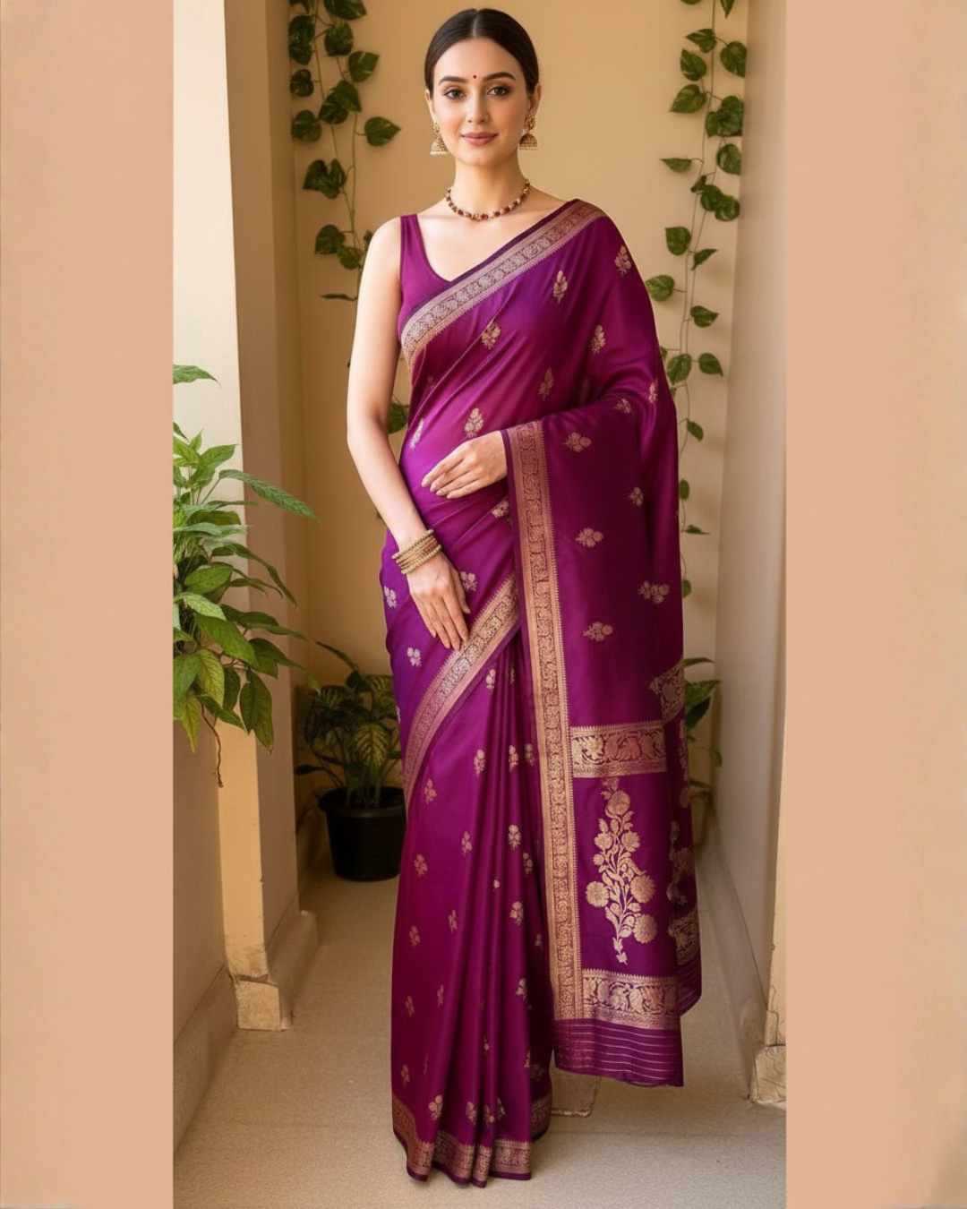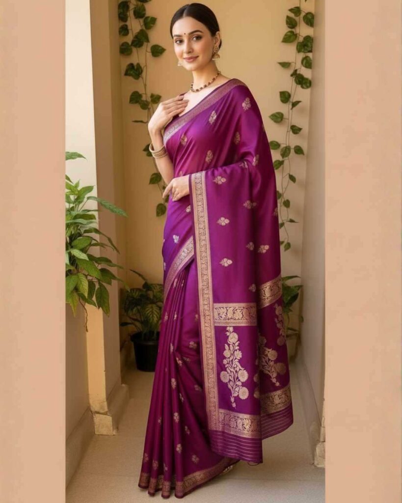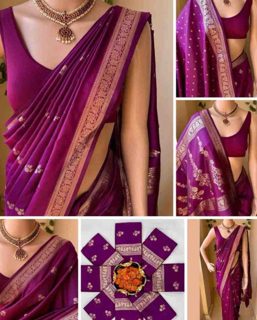 KP-6042 Soft Lichi Silk Saree with Jacquard Blouse ( Un- Stitched)