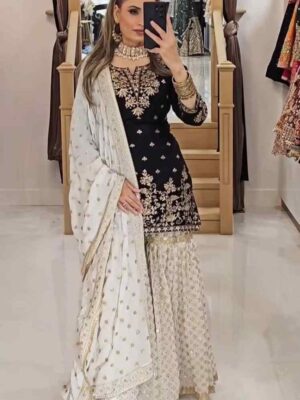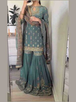 SSR-504 Georgette Sharara And Dupatta With Embroidery Work