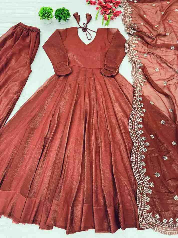 Fabric Type | Gown :Heavy Fendi Silk With Full Sleeves ,Inner : Heavy Micro Cotton , Length : 51 Inch , Flair : 4.5 mtr Bottom : Heavy Fendi Silk Dupatta Heavy Fendi Silk With Embroidery Sequence Work |