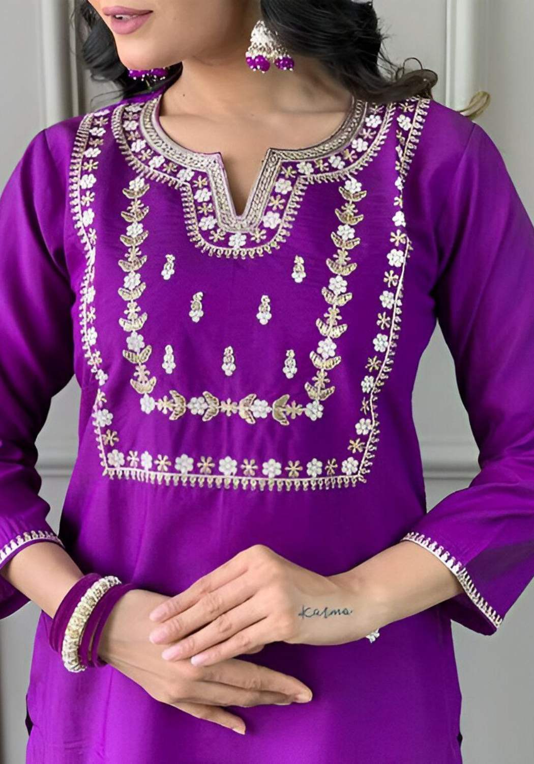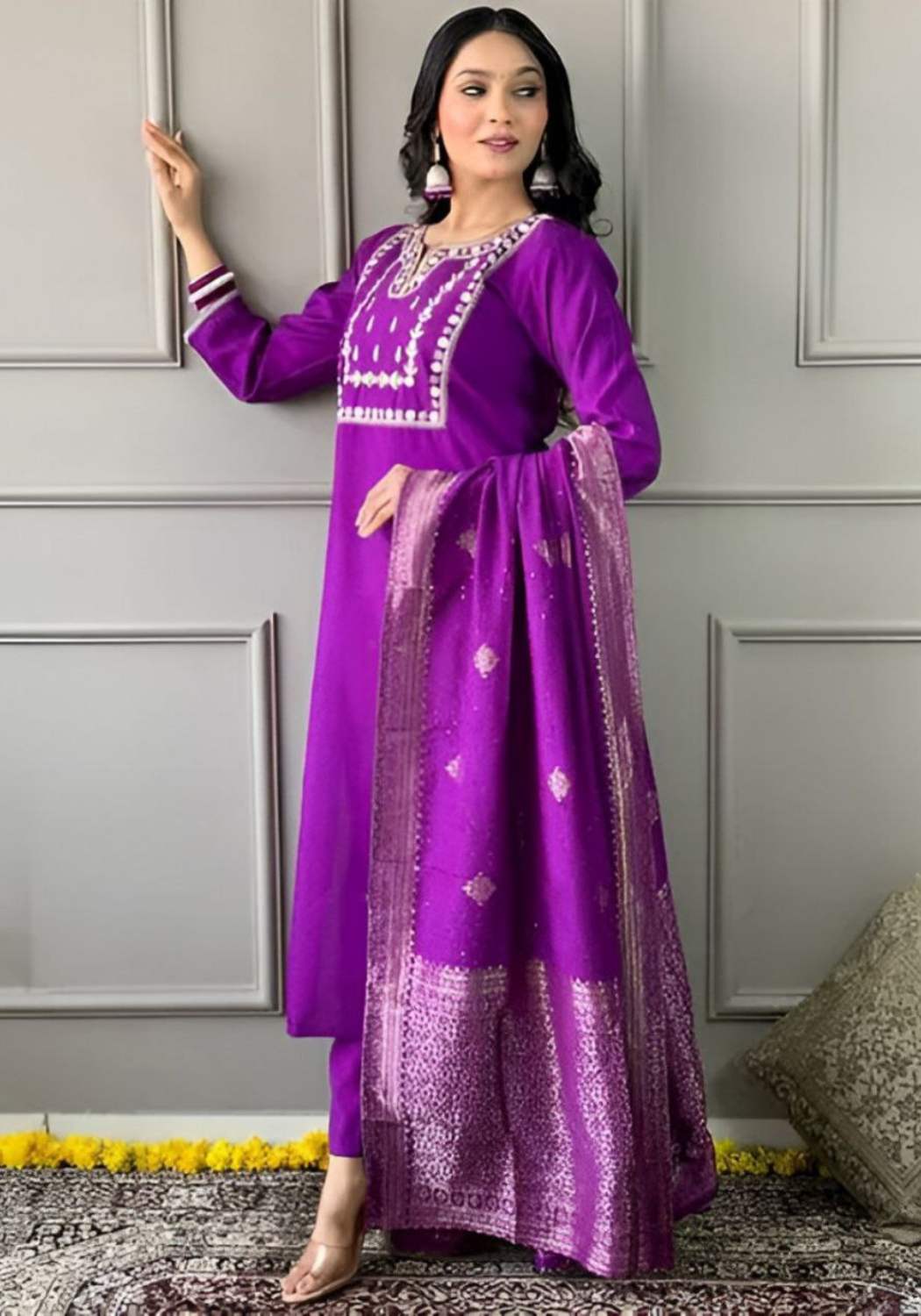 | Fabric Type | Top: Heavy Party Wear Heavy Viscose Chanderi Cotton With Embroidery Sequence Work With Full Sleeve , Inner: Heavy Micro Cotton , Length: 45-46 Inch Bottom: Heavy Viscose Chanderi Cotton With Elastic , length:40-41 Inch Dupatta: Heavy Banarasi Silk With Jacquard Work Type: Fully Stitched |