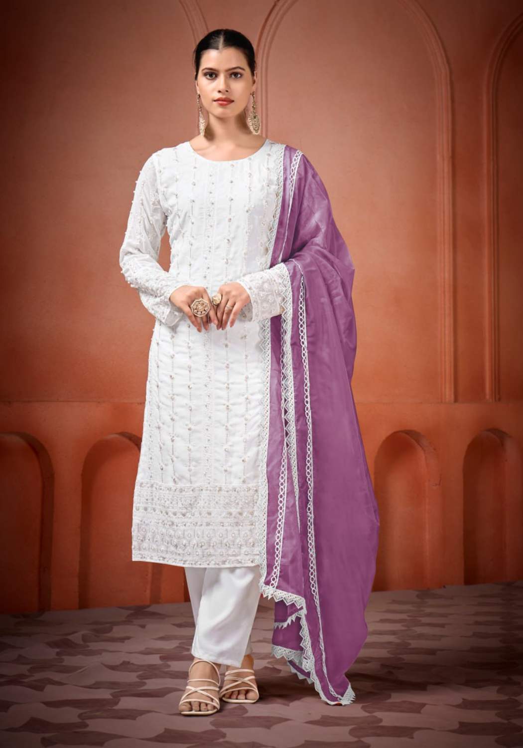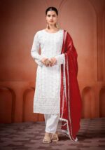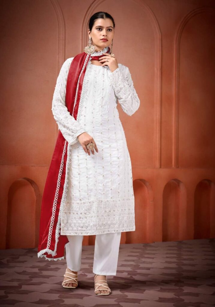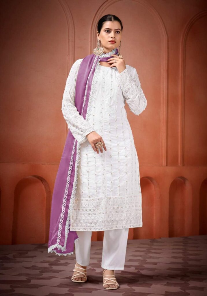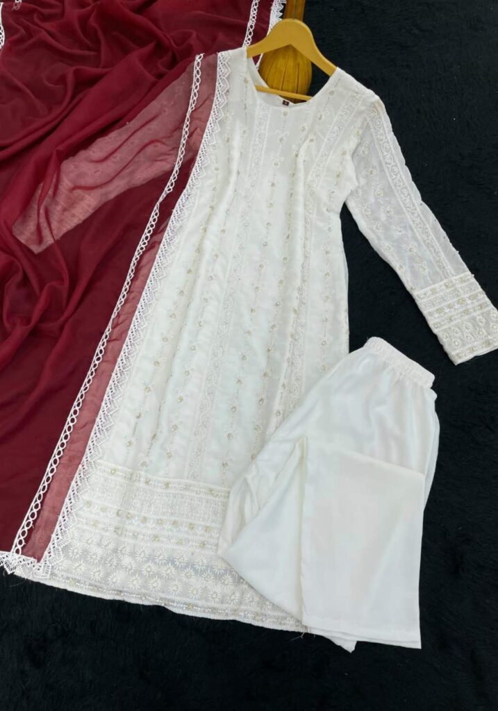 Fabric Type | Top: Heavy Georgette With Heavy Embroidery Sequence Work With Moti Work.|Top Inner: Heavy Micro Cotton| Top Length: 46 Inch | Bottom: Heavy Micro Cotton |Dupatta: Heavy Tabby Silk With 4Side Lec.| Type: Fully Stitched |