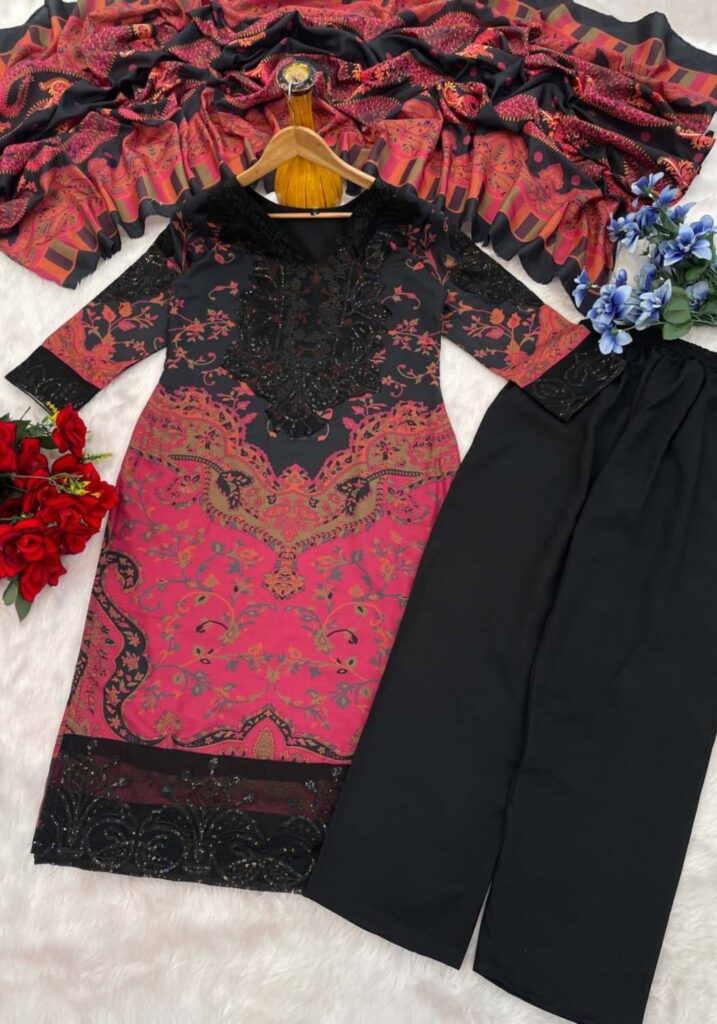 | Fabric Type | Top: Heavy Muslin Cotton With Digital Print With Embroidery Sequence Work Patch With Full Sleeve|Top Inner: Heavy Micro Cotton| Top Length: 47-48 Inch | Bottom: Heavy Micro Cotton With Elastic |Bottom length:40-41 Inch | Dupatta: Heavy Muslin Cotton With Heavy digital print Work| Type: Fully Stitched |