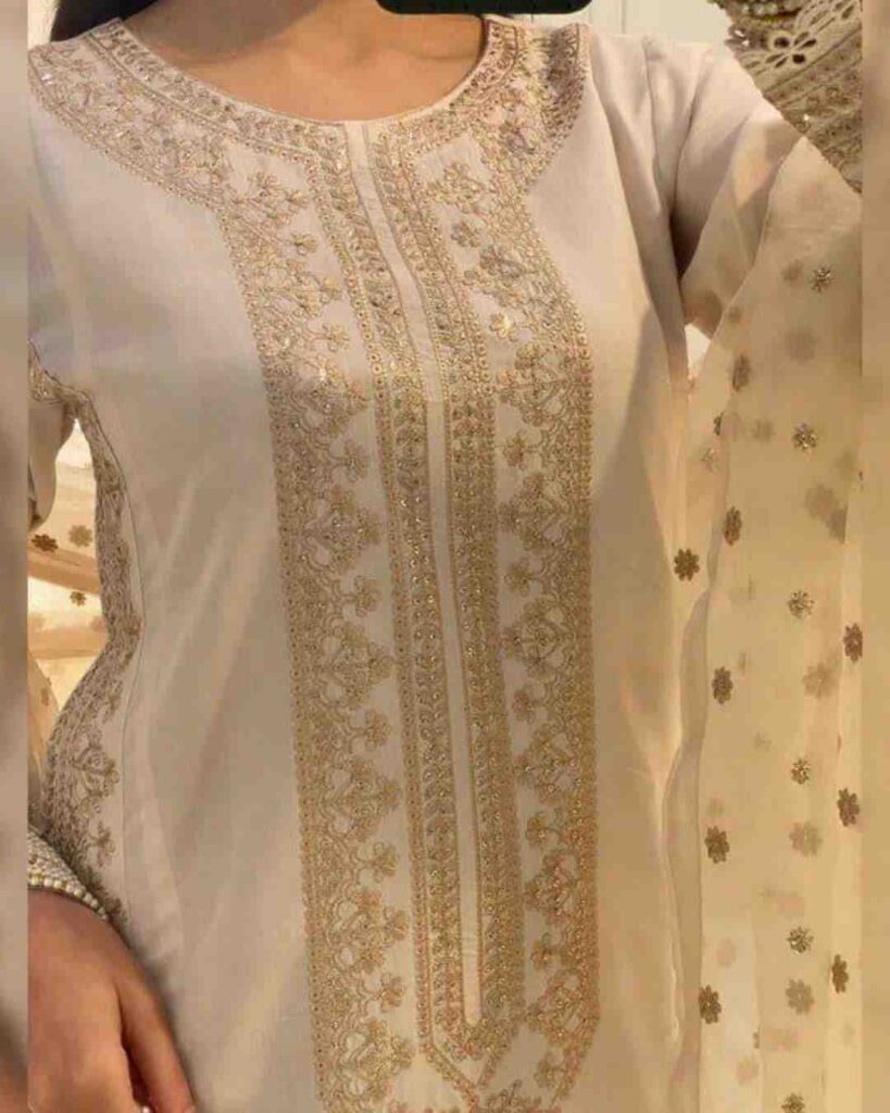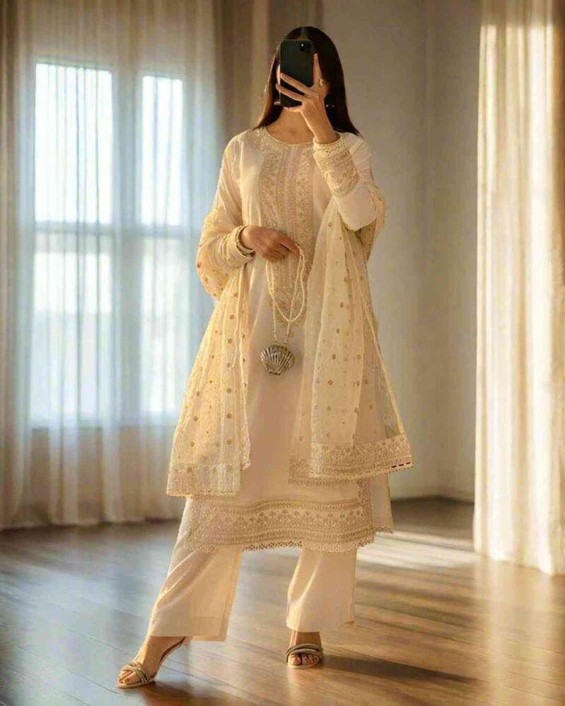 Fabric Type | Top: Heavy Soft Chanderi Silk With Embroidery Sequence Work. , Inner: Heavy Cotton , Length: 44-45 Inch Bottom: Heavy Chanderi Silk Cotton With Elastic , length:41 Inch Dupatta: Heavy Organza silk With Embroidery Sequence Work With Lec., Type: Fully Stitched |