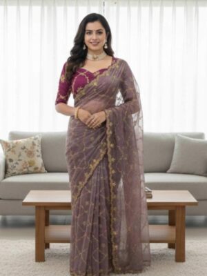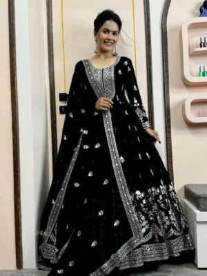 ZF-5008 Georgette Gown And Dupatta With Sequence Work