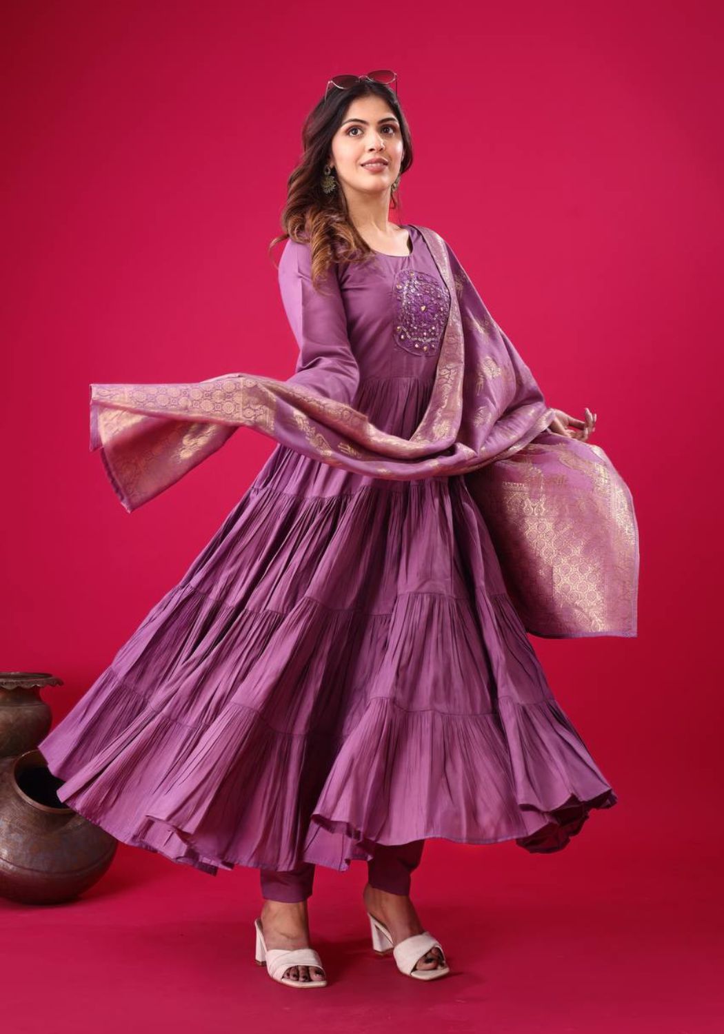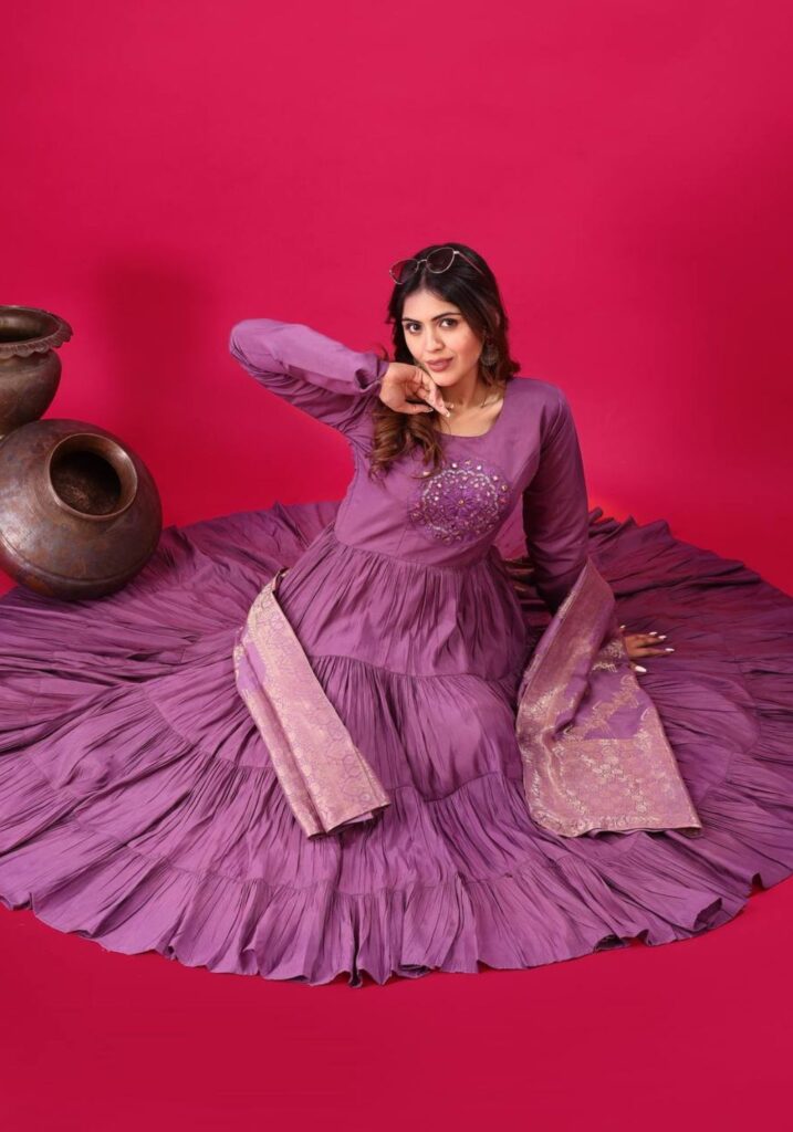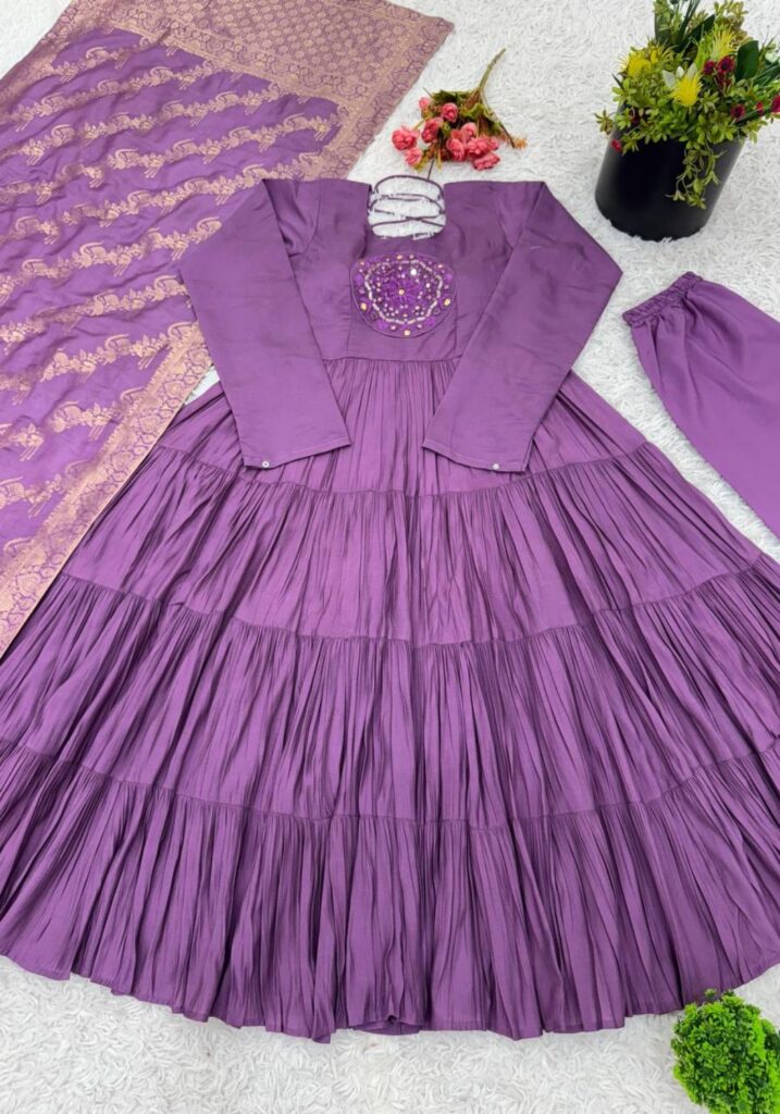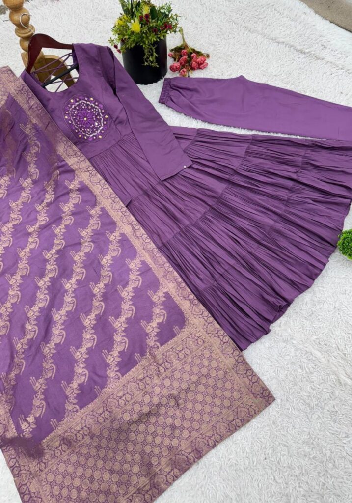 Fabric Type | Gown: Heavy Roman Silk With Embroidery Sequence Work with Full Sleeve With Micro cotton Inner, Length:51-52 Inches , Flair:14 Meter Bottom : Heavy Micro Cotton Free Size With Elastic Dupatta : Heavy Muslin Jacquard Design |