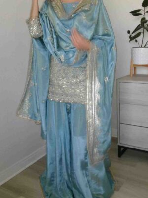 Fabric Detail | Anarkali Gown : Crunchy Silk With Embroidery Sequence Work , Inner: Heavy Micro Cotton, Sleeves :Full , Length :48-49 Inch, Flair :4mtr Bottom : Heavy Micro Cotton And Length : 40-41 Inch Dupatta: Crunchy Silk With Embroidery Sequence Work , Length 2.10 mtr. |